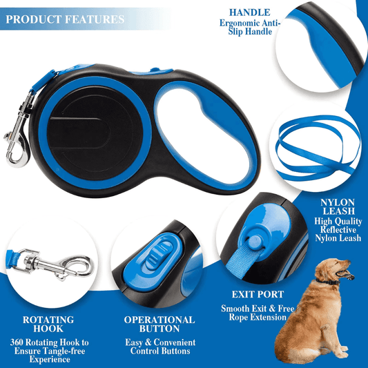 Automatic Dual Retractable Dog Leash with Flashlight and Waste Bag Holder - Tangle-Free, 3 Meter Reflective Leash for Two Dogs