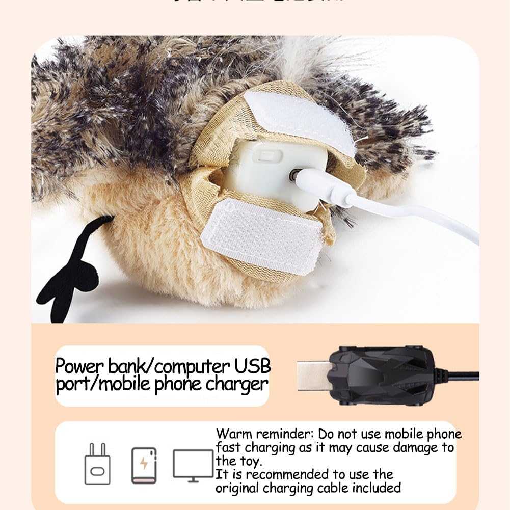 Wiederaufladbares Katzenspielzeug „Flatternder Vogel“ mit Geräuschen und Katzenminze