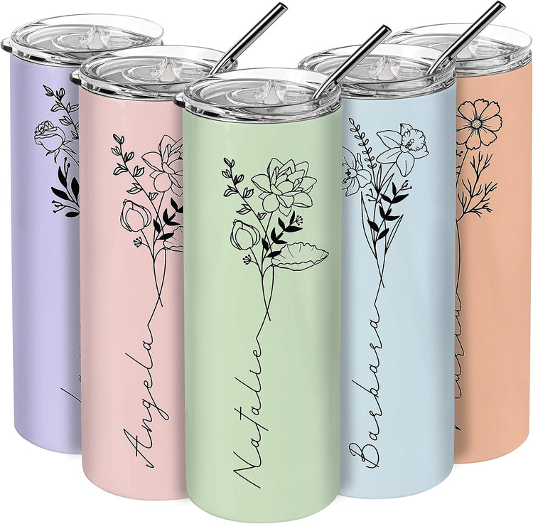 A Special Touch to Your Gift: The tumbler can be customized with a name and birth flower Birth flowers are often associated with unique meanings and symbolism, representing different qualities or characteristics. By incorporating the birth flower, the tumbler becomes a personalized item that celebrates the recipient's individuality and creates a deeper connection between the gift and the person receiving it.