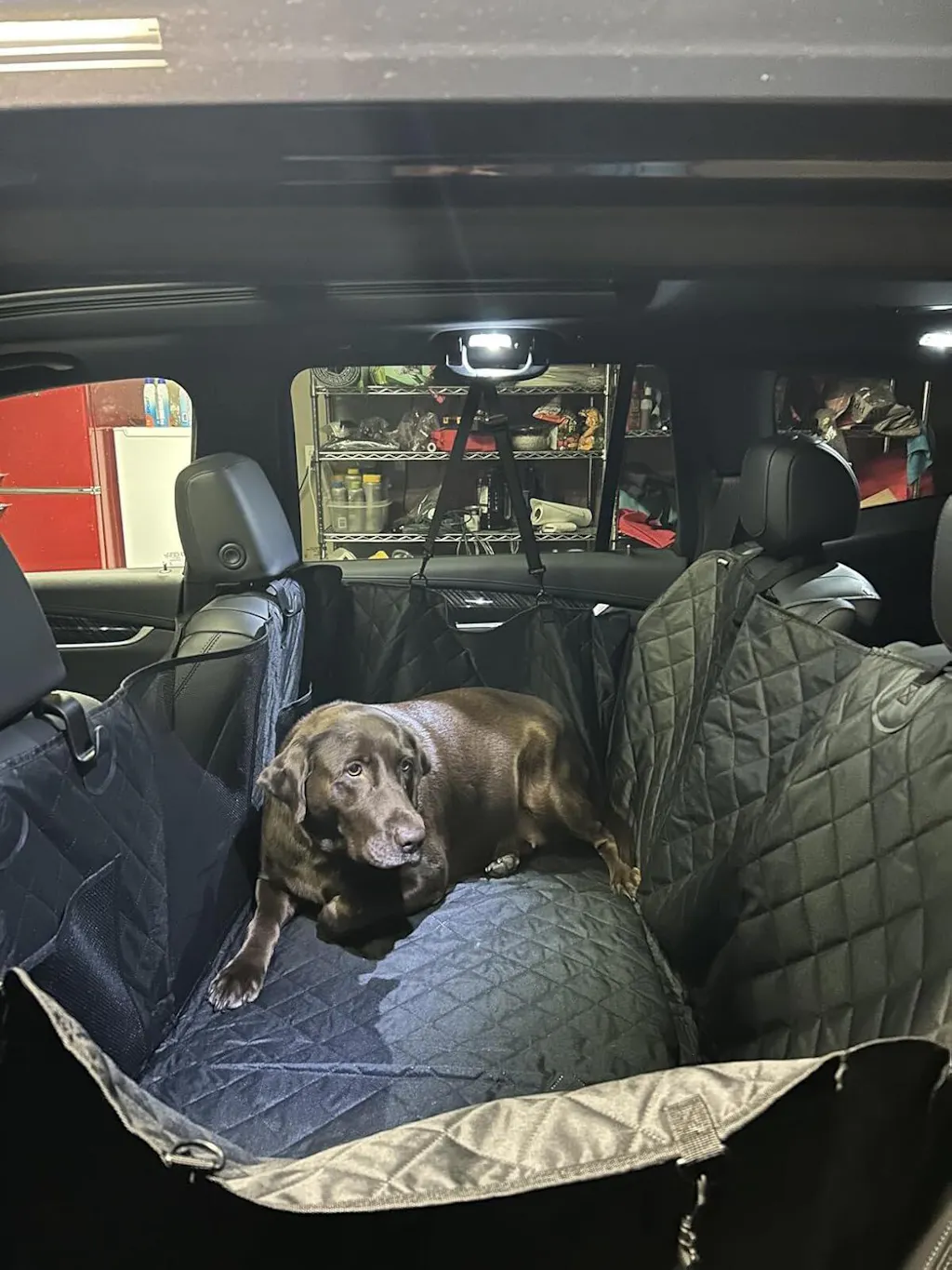 I recently purchased this dog cover for my SUV, and I’m beyond impressed! I have three dogs, and this cover fits my vehicle perfectly, providing full coverage for the backseat. The material is durable, water-resistant, and so easy to clean. It has saved my car from dirt, fur, and any accidental messes my dogs might cause. The non-slip backing keeps it securely in place, and I love that it also has side flaps for extra protection.