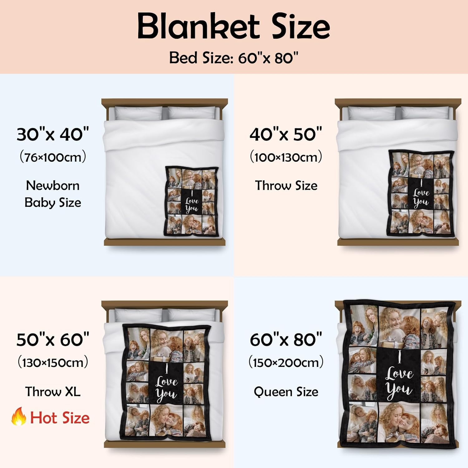 Printed in USA:High-definition custom photo blankets printed in the USA.Start creating a one-of-a-kind personalized mom blanket featuring your favorite photos and words to turn memories with Mom into a heartwarming keepsake.