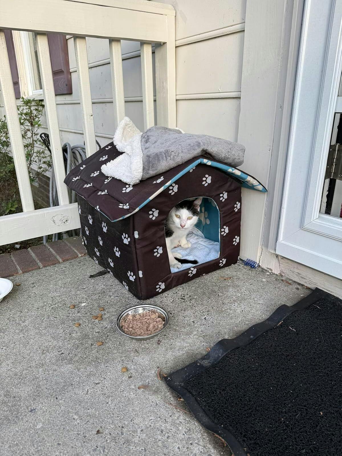 Winter House With Self Warming Pad-Outdoor Indoor Weather-proof Heat Insulated Shelter Enclosure For Cats Dogs Rabbits- Portable Water