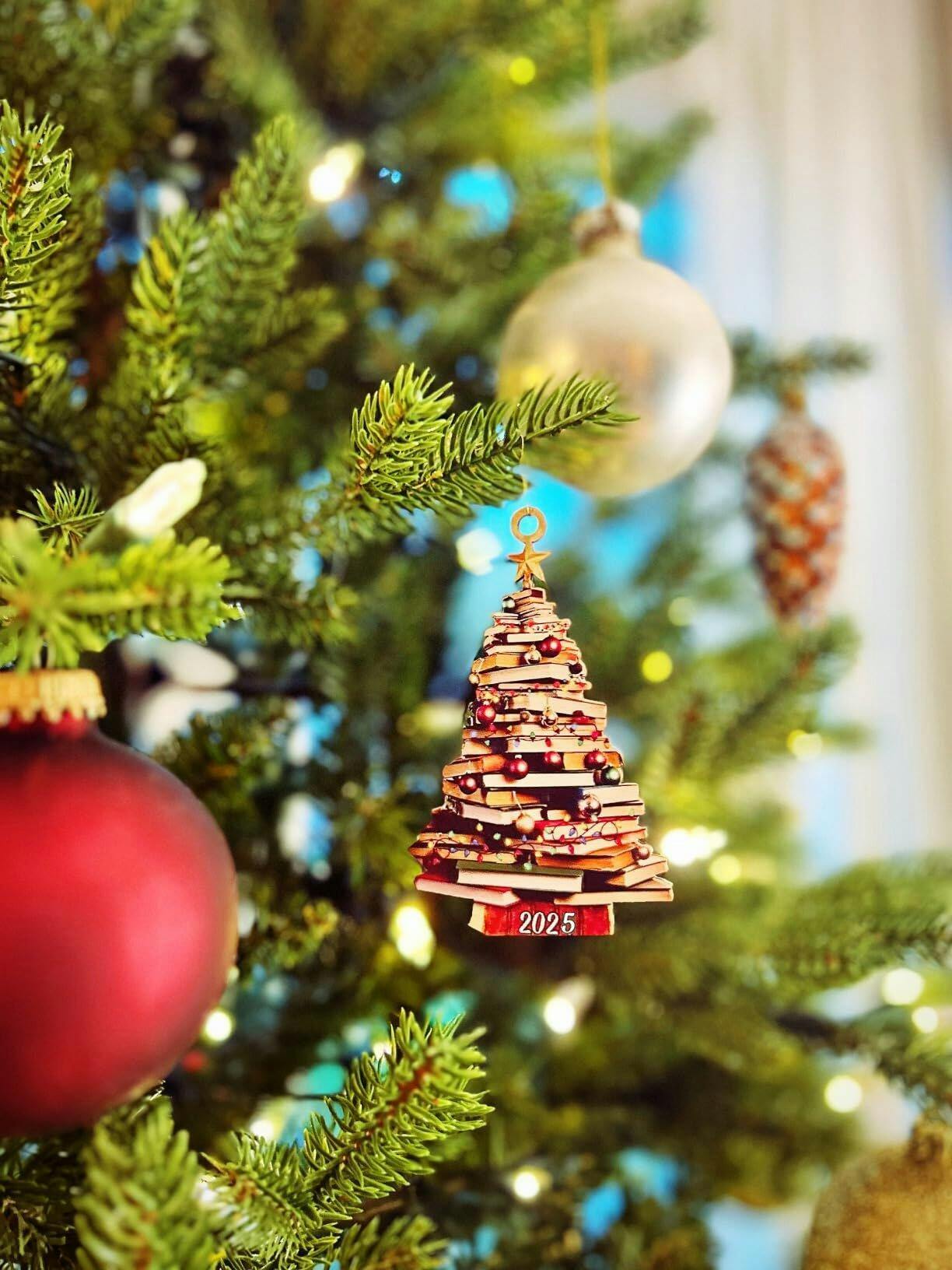 - 🎄 BEAUTYFUL CHRISTMAS GIFT– Perfect for 2025, these Bookworm Christmas ornaments feature a charming bookshelf design.