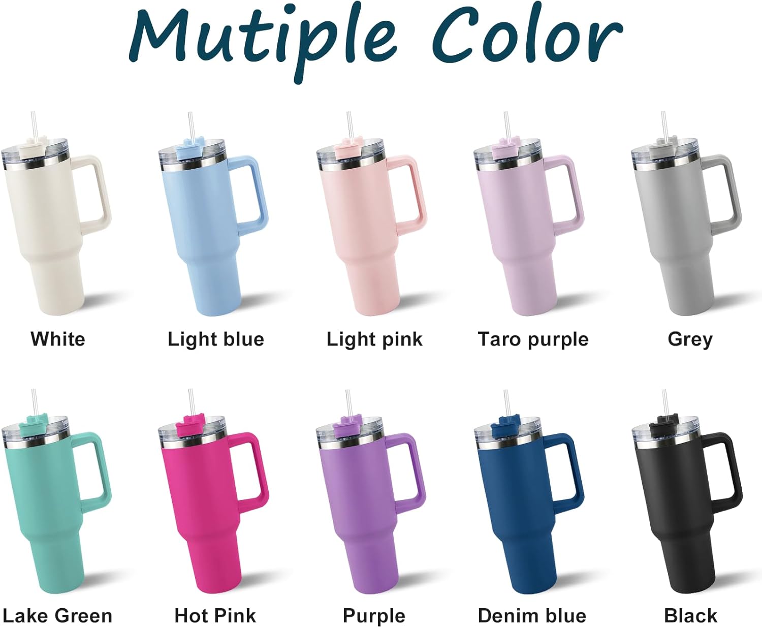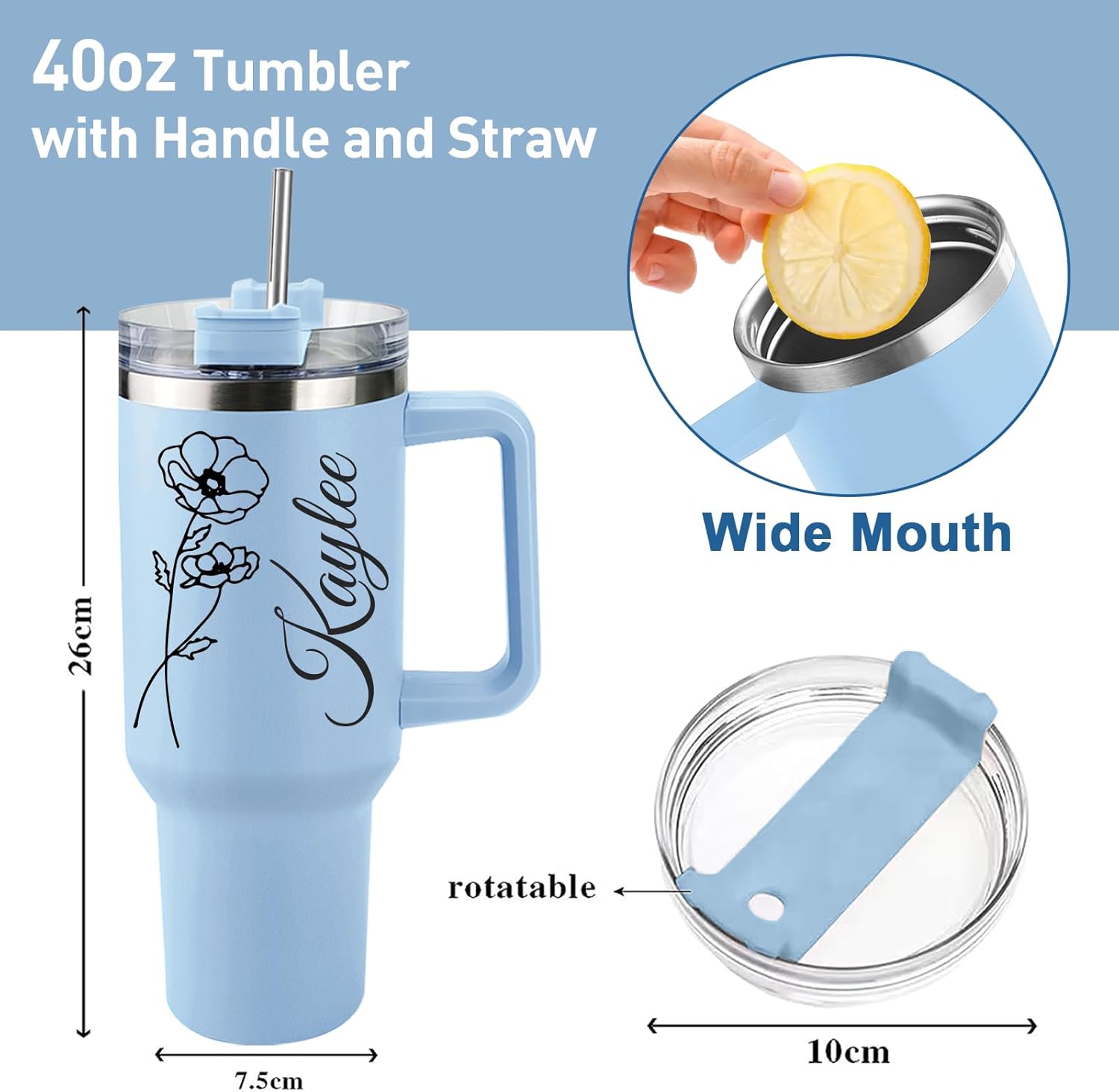Personalized 40 Oz Tumbler with Handle and Straw, Custom Cup with Name & Birth Flower, Stainless Steel Travel Coffee Tumbler