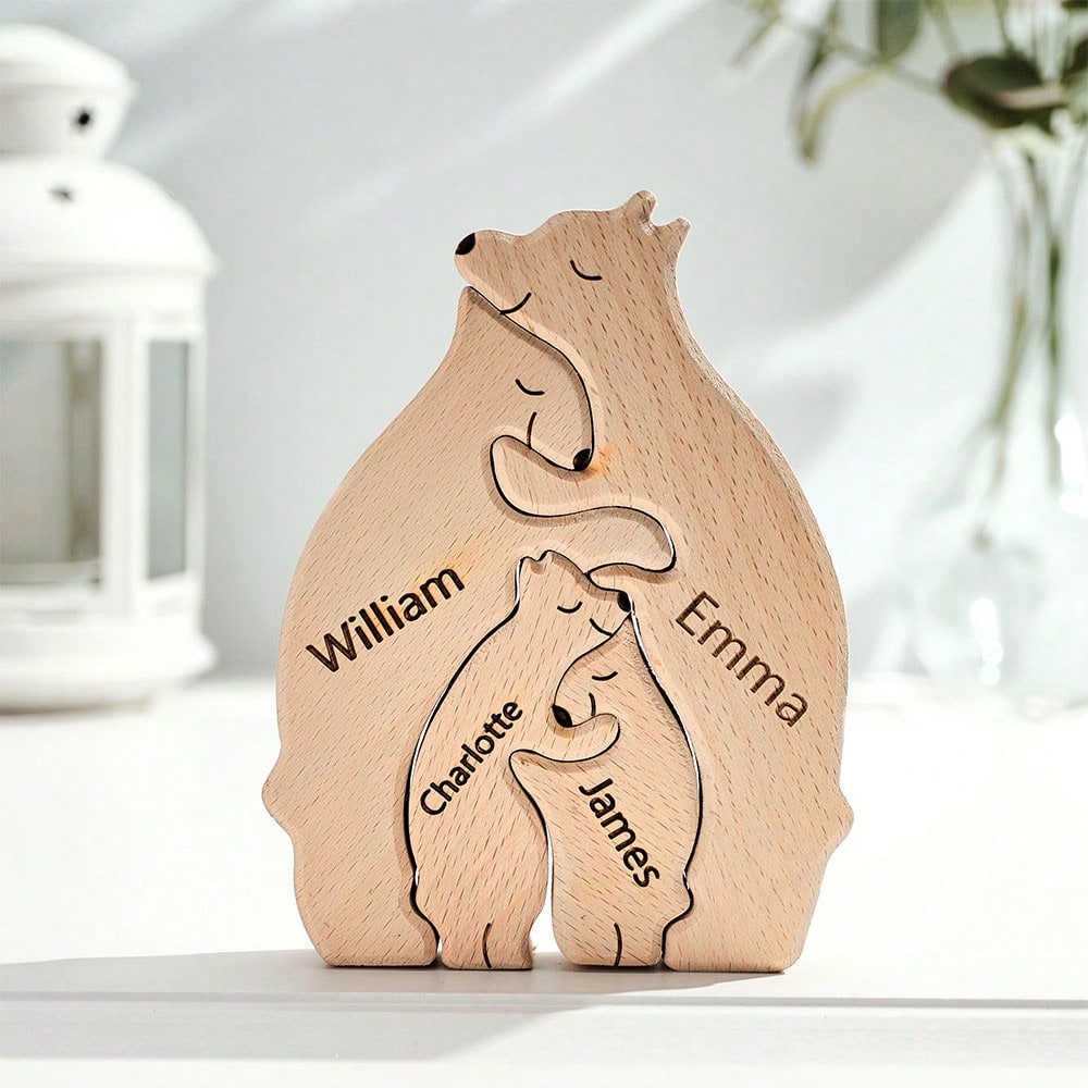 United We Stand - Family Bear Shaped Wooden Art Puzzle - Wooden Pet Carvings, Wood Sculpture Table Ornaments, Carved Wood Decor