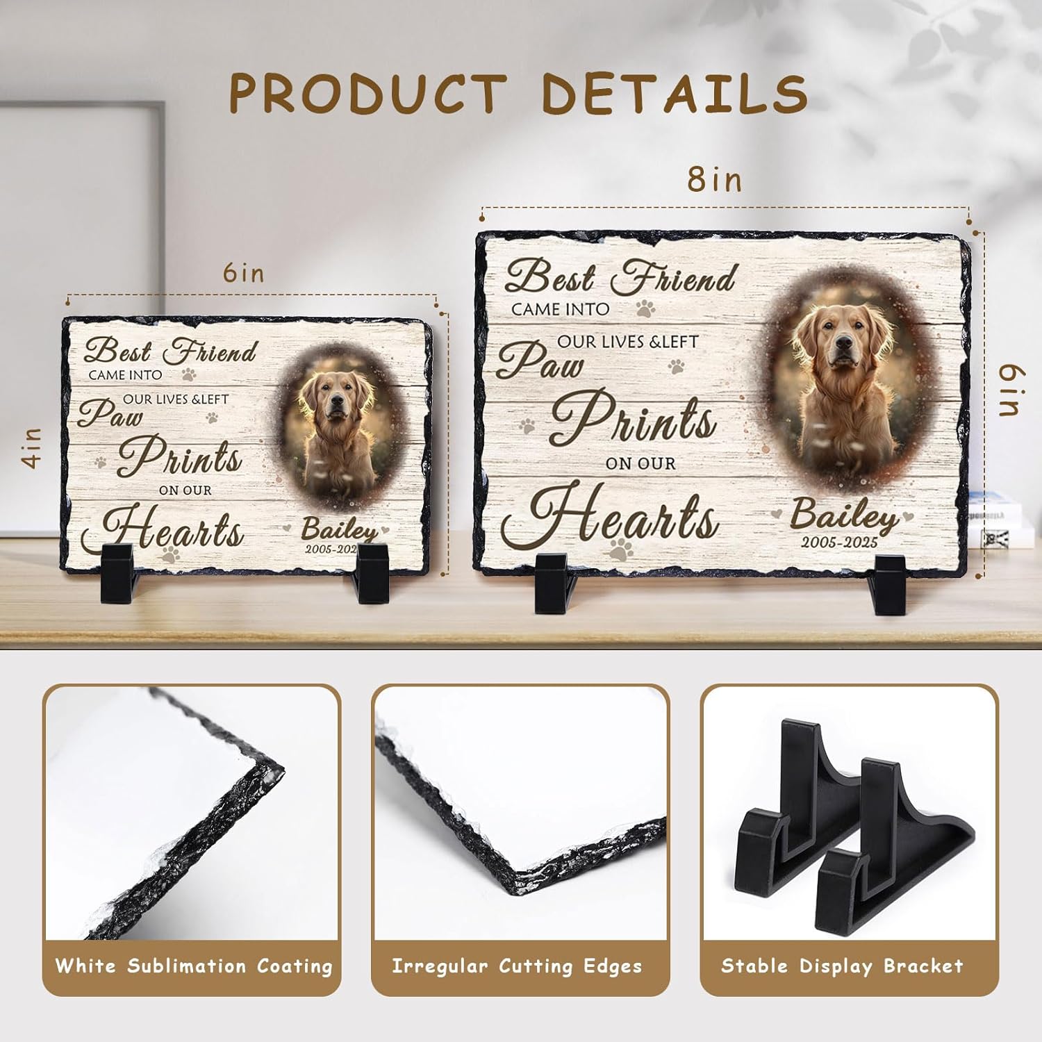 Customizable Memorial Stone - In memory of your pet with this personalized memorial stone, featuring sympathy quote, your dog’s picture, name, and birth/passing years. A keepsake frame that keeps their memory alive, offering comfort during the loss of your dog.